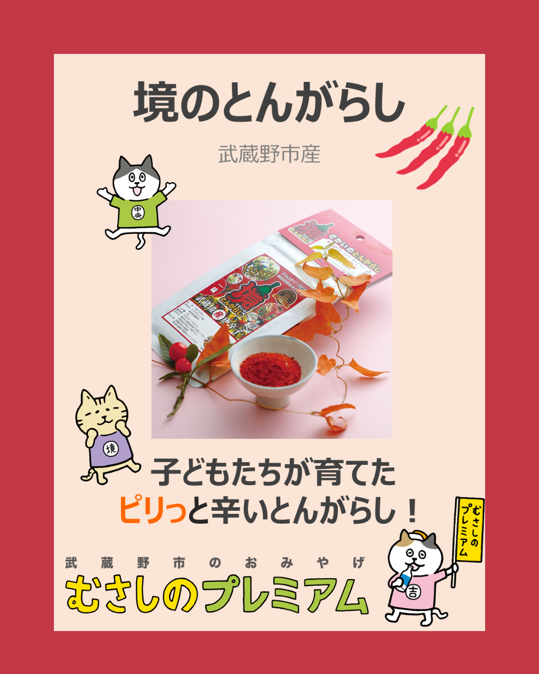 武蔵野市のおみやげブランド「むさしのプレミアム」認定商品の「境のとんがらし」が、武蔵野市役所8階にある市民食堂「さくらごはん」さんにて販売を開始しました♪
