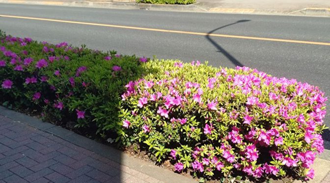 この日は日差しが強く、暑いくらいでした。街路にはつつじが咲き始め、日当たりのいいところでは、一斉に咲いていました。
