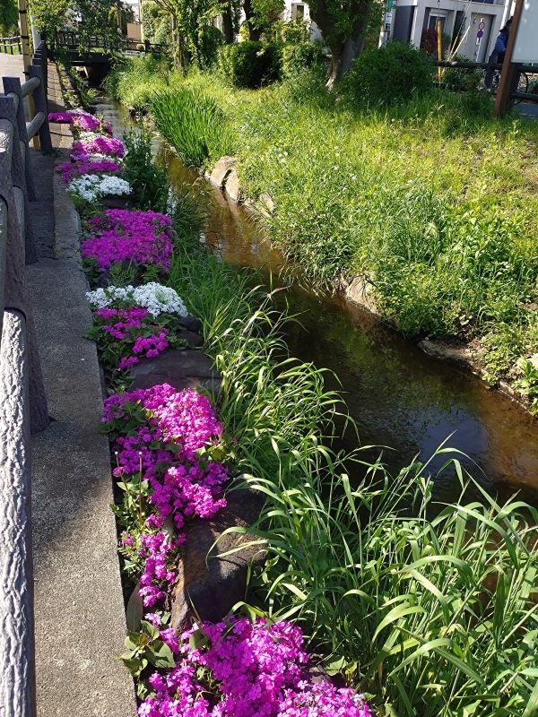 向かっている途中、千川上水の芝桜がきれいに咲いていました。