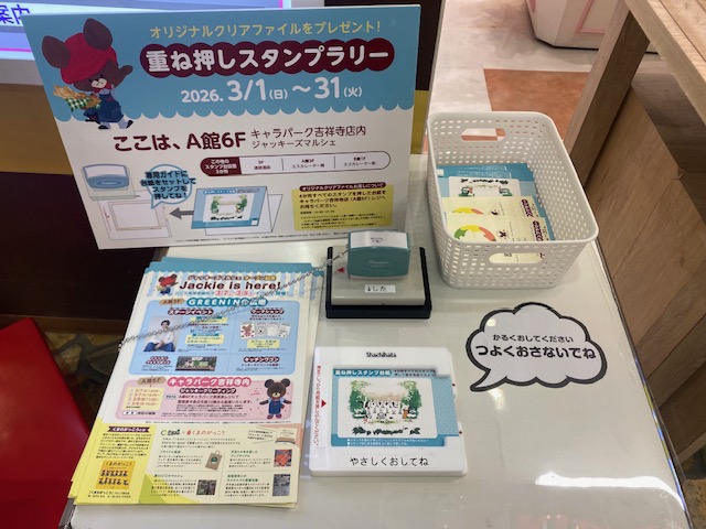 重ね押しスタンプラリーもありました。4か所のスタンプ箇所をまわって絵を完成させると、限定のオリジナルクリアファイルがもらえます。