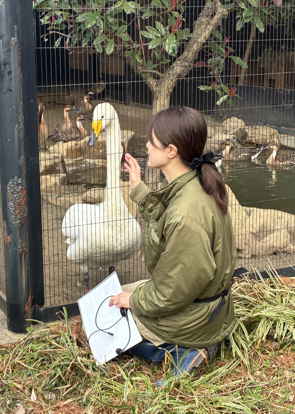 飼育係の下川さんが大好きなオオハクチョウ。気配を感じるとずっとそばを離れないそうです。一途でかわいいですね…